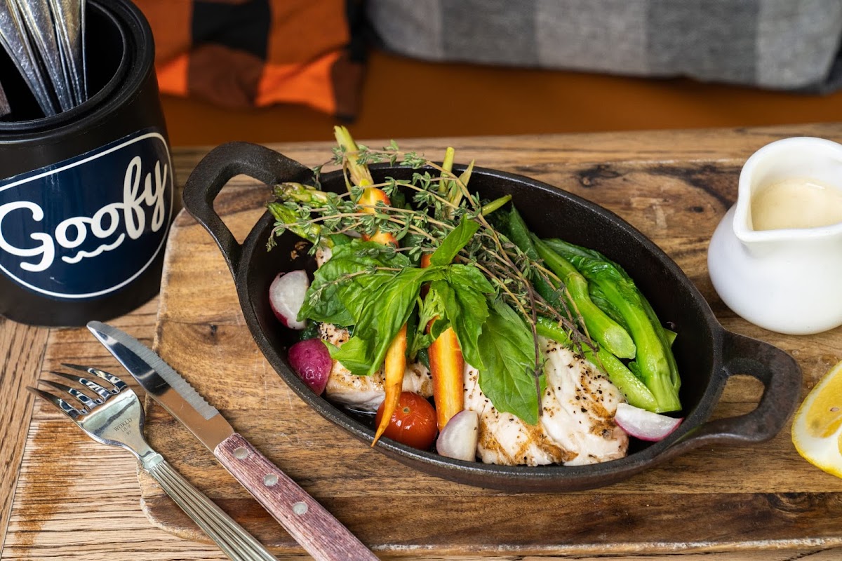 We decided to try Goofy's based on all the great Yelp reviews and appetizing pictures. The restaurant is located upstairs and has a small, quaint vibe with simple surf decor. While the service was excellent and the staff was attentive, the experience was a bit of a mixed bag for us. The dinner menu felt a bit limited for our taste. I ordered the ground beef tacos, which were beautifully presented but had a flavor I couldn't quite enjoy. I managed to eat two of the four tacos, but the taste of the meat just wasn't for me--though I think others might like it more. My husband opted for the beef patties served on rice with gravy and an egg on top (he skipped the egg) and a side of toast. While the dish's appearance wasn't the most appealing (think cafeteria-style), he actually loved it and finished every bite! Overall, Goofy's is worth trying, and while it didn't fully hit the mark for us, I can see why it has such a loyal following. It's a one-time visit for me, but I'd still recommend it for the excellent service and unique vibe!